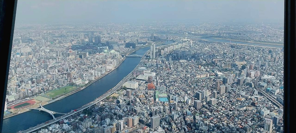 Une éclaircie entre deux averses et nous trouvons le temps de monter au Tokyo Skytree, une tour de radiodiffusion haute de 634 mètres et construite, comme tout le reste de la ville, aux normes anti-sismiques. La tour devient, le jour de son inauguration en 2012, la deuxième plus haute structure auto-portante du monde. Une merveille de savoir-faire technologique et de finesse qui offre un panorama époustouflant sur toute la région et même jusqu'au mont Fuji lorsque l'horizon est dégagé.