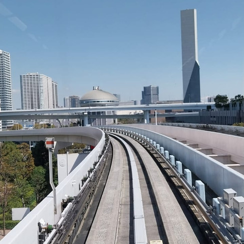 Pour arriver jusqu'à ce quartier de divertissement jouxtant le port autonome, c'est déjà une aventure urbaine au sens agréable du terme. ll faut prendre la nouvelle ligne aérienne automatisée Yurikamome (qui veut dire "mouette rieuse"). Le monorail sinue entre les gigantesques buildings, enjambe les autoroutes et passe sur la plate-forme inférieure du fameux Rainbow Bridge (pont "arc-en-ciel"). Nous nous installons à l'avant du train et le trajet se passe comme dans une scène de cinéma dynamique.