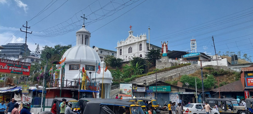 Nous prenons le temps de visiter Munnar, sa rue principale ainsi que son temple, sa mosquée et son église toutes trois implantées sur moins d'un hectare et qui dominent cette petite ville. Nous entrons au marché couvert faire quelques emplettes...la foule, les épices et les couleurs nous rappellent notre Maroc, encore !